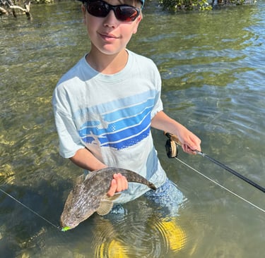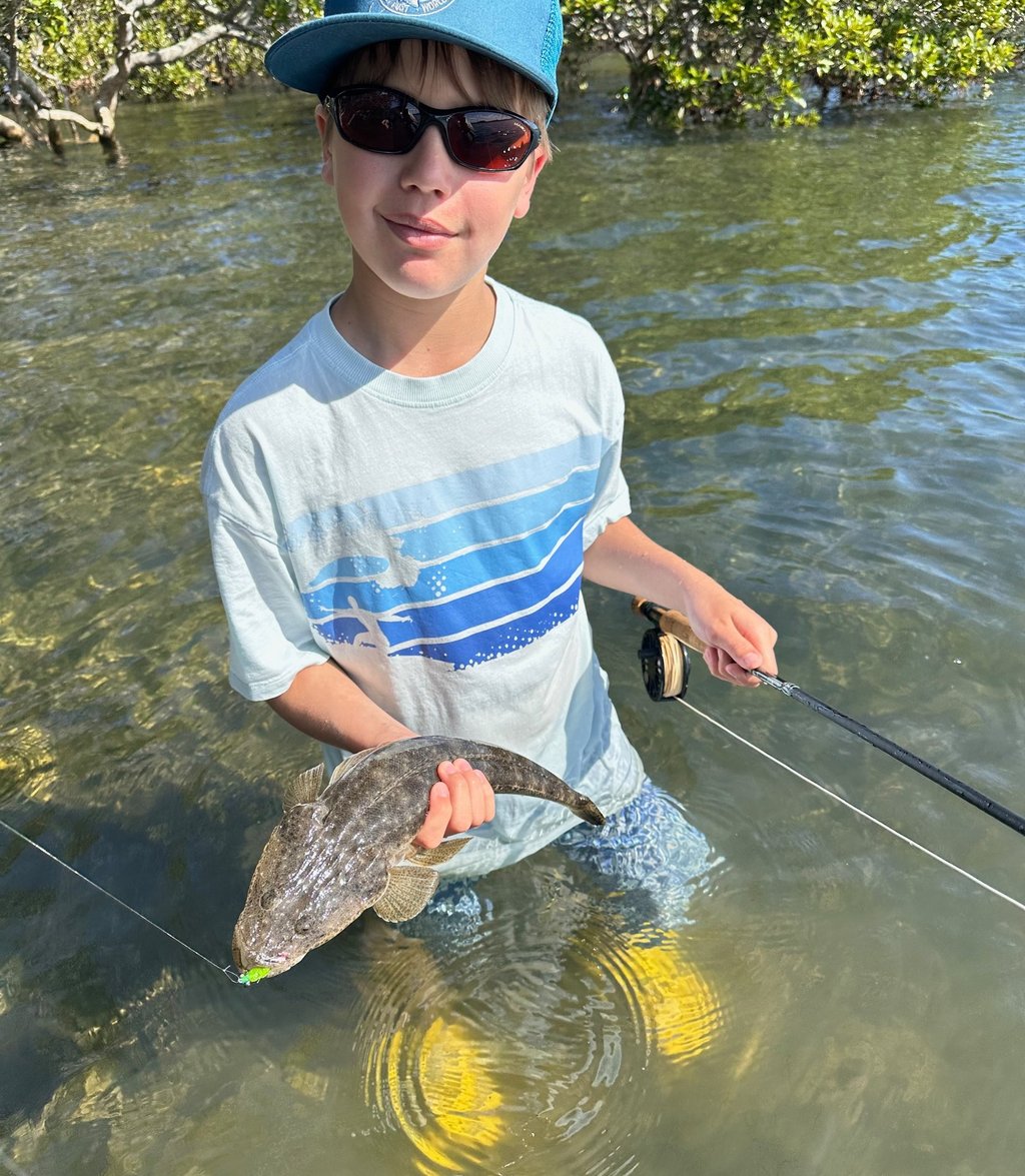 Above. My son Jensen loves chasing flathead in summer, his goal for 2026 is to catch a flathead on a fly that he has tied.